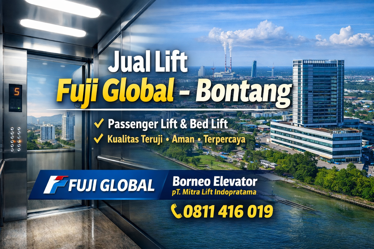 Borneo Elevator – PT. Mitra Lift Indopratama melayani jual lift Fuji Global di Bontang dengan: