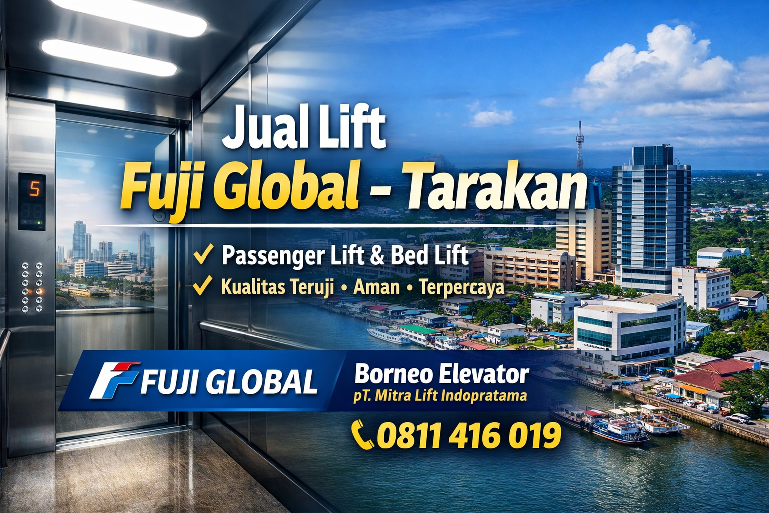 Melayani jual lift Fuji Global di Tarakan dengan instalasi profesional dan layanan purna jual.